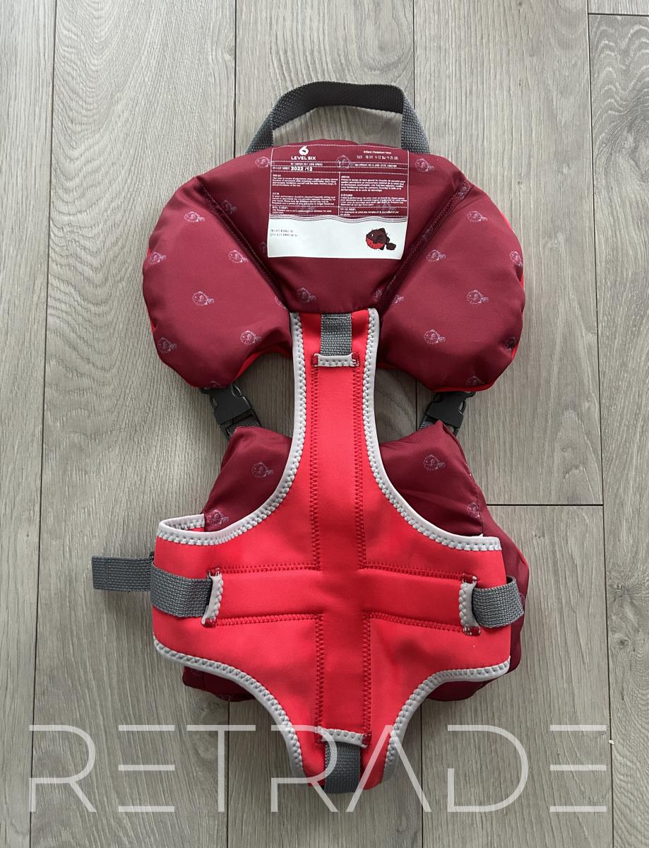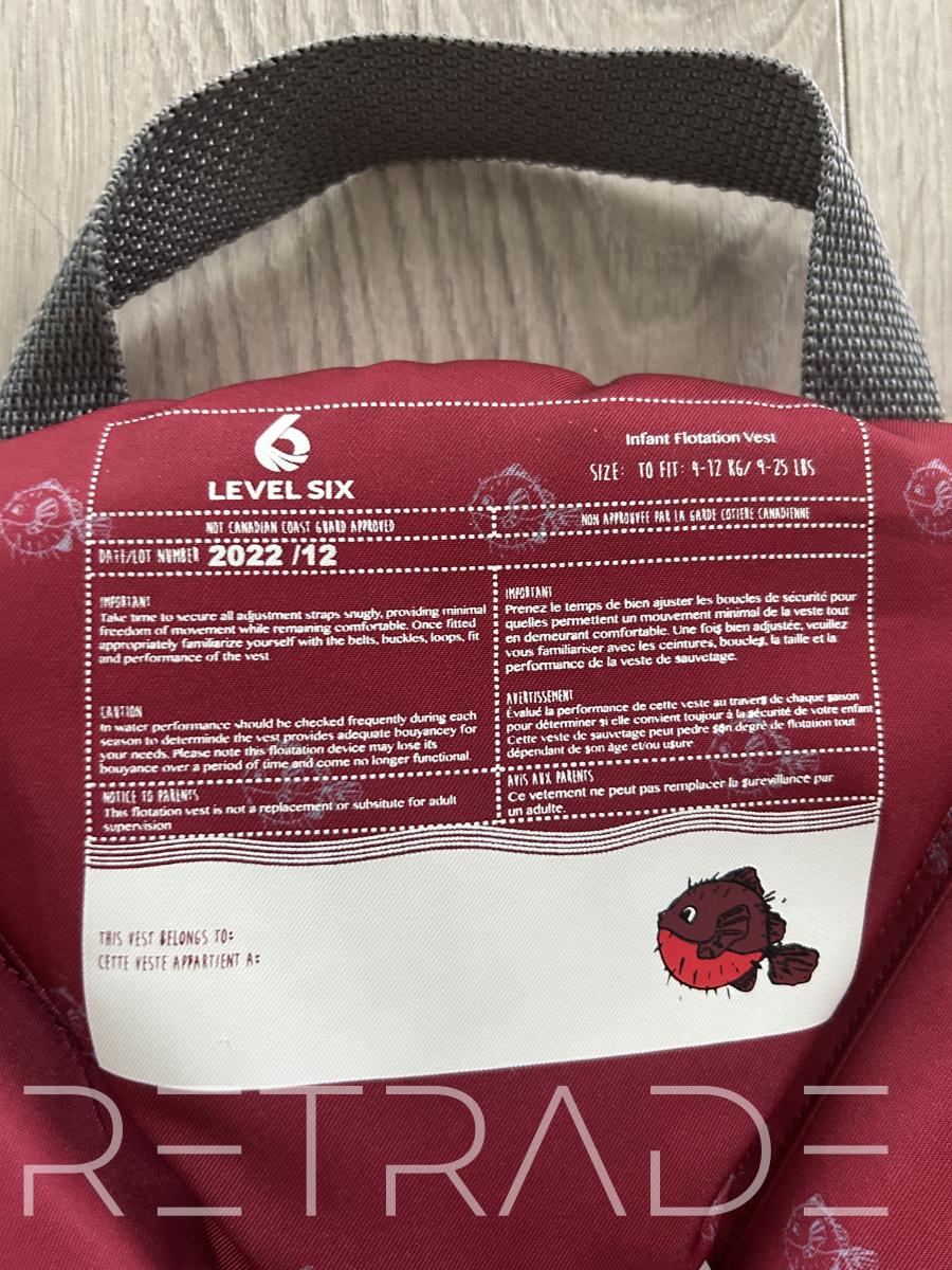 Ensure your little one's safety on the water with this high-quality infant flotation vest from Level Six. Designed for infants weighing 9-25 lbs, this vest offers superior comfort and security. Featuring adjustable straps and a secure buckle system, it provides a snug fit, while the bright red colour ensures high visibility. Ideal for boating or any water activities. In excellent condition.